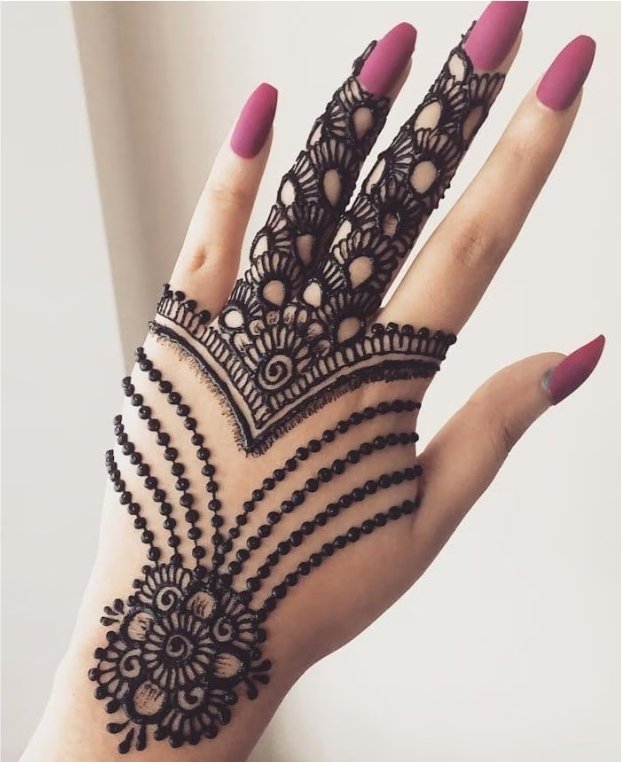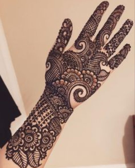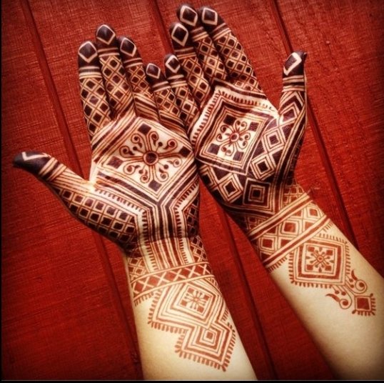 Arabic henna designs are the most beautiful and easy to apply to any design. It is a combination of floral motifs and geometrical patterns with a lot of shading involved and is getting popular nowadays.